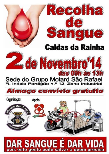 O Grupo Motard São Rafael vai organizar no próximo dia 2 de Novembro uma nova acção de recolha de sangue na sua sede na Zona Industrial de Caldas da Rainha.