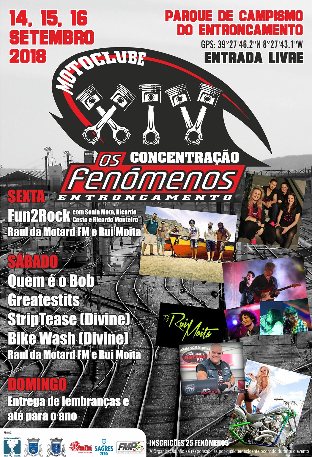 O Motoclube "Os Fenómenos do Entroncamento" realiza a sua concentração anual nos dias 14, 15 e 16 de setembro no Parque de Campismo do Entroncamento. A entrada é livre.