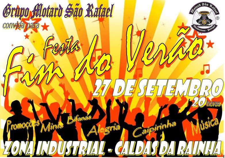 O Grupo Motard São Rafael vai organizar no próximo sábado, 27 de Setembro, a já habitual festa de fim de verão. O evento vai decorrer na sede do grupo. na Zona Industrial de Caldas da Rainha, a partir das 20h00.