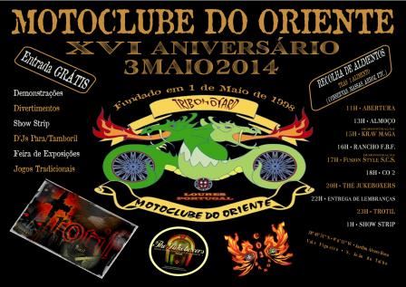 No próximo sábado, dia 3 de Maio, o Motoclube do Oriente celebra o seu 16º aniversário em São João da Talha.